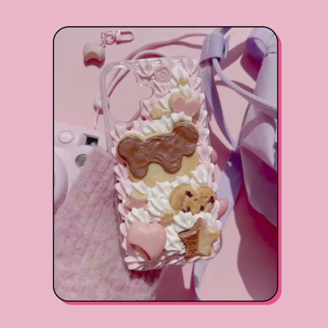 neapolitan theme decoden phone case with chocolate teddy cookie & sugar cookiesneapolitan theme decoden phone case with chocolate teddy cookie & sugar cookies