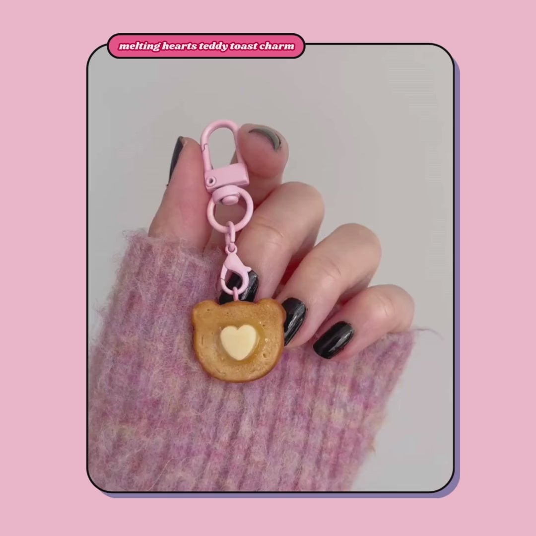 melting hearts teddy bear butter toast charm keyring with lobster claspmelting hearts teddy bear butter toast charm keyring with lobster clasp