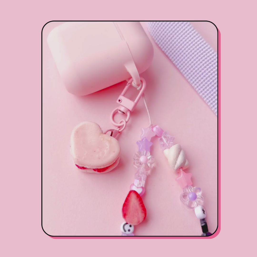 heart shaped pink raspberry macaron keyring charmheart shaped pink raspberry macaron keyring charm