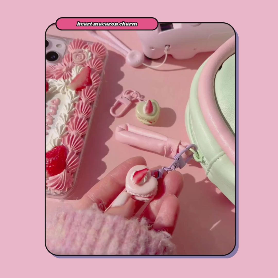 heart shaped pink strawberry macaron with whipped cream keyring handbag charmheart shaped pink strawberry macaron with whipped cream keyring handbag charm