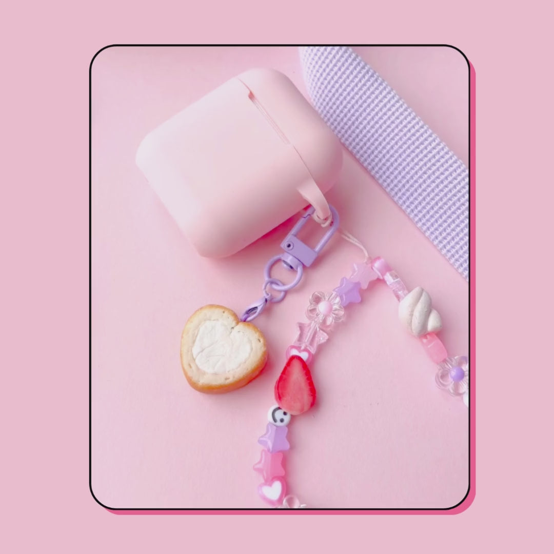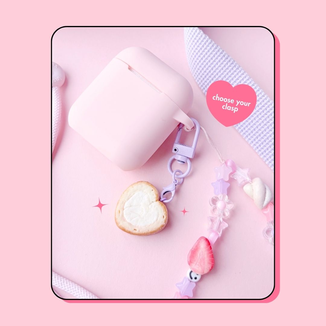 • šŸ„ heart shape whipped cream swiss roll cake keyring with lobster clasp